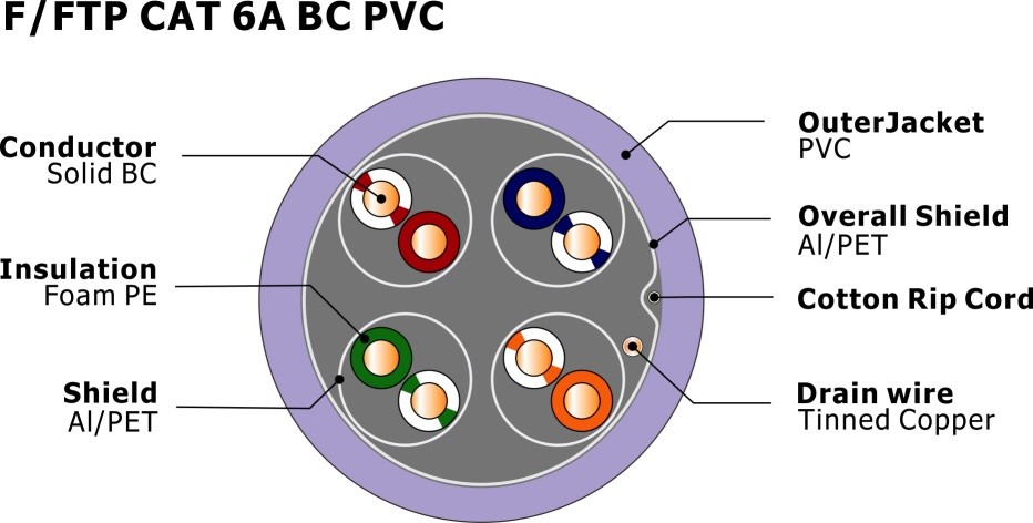 | จำนวนตัวนำ: | 4 คู่ | พิมพ์: | F/FTP cat6a |